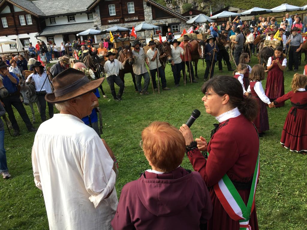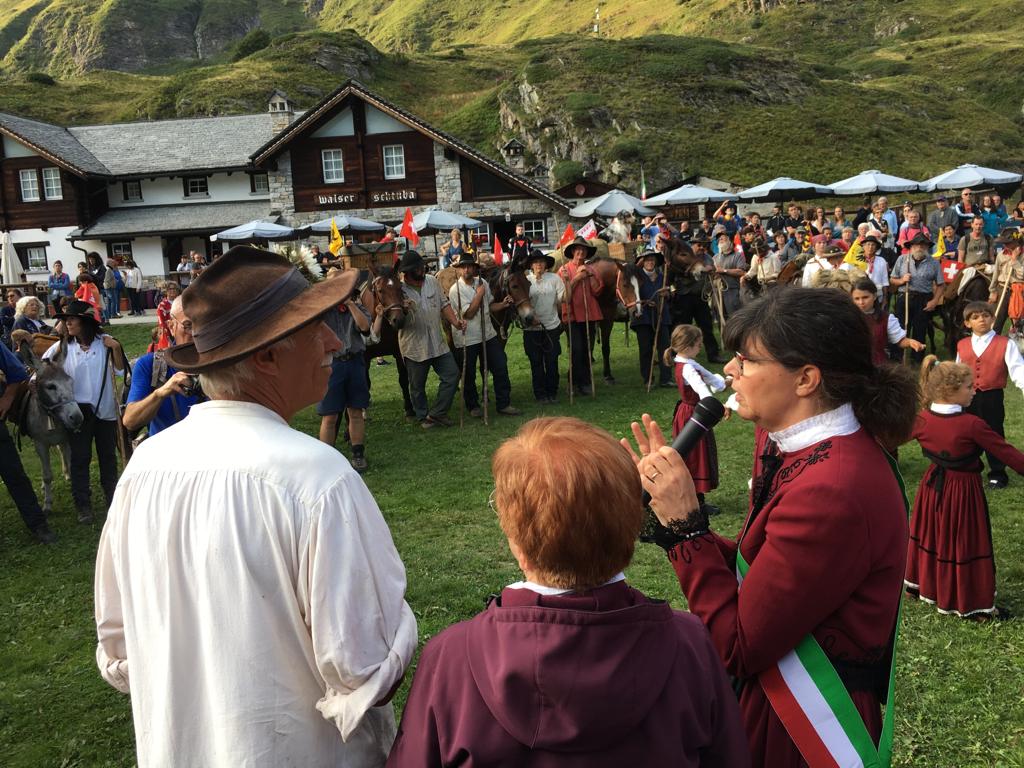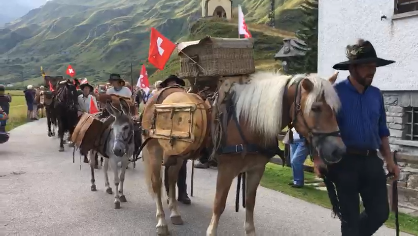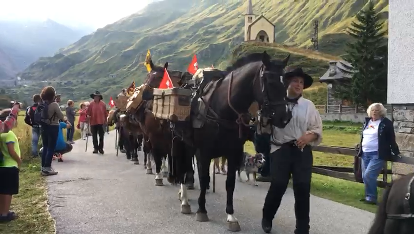 è arrivata in Ossola. I circa 70 someggiatori, con somari, cavalli ed il loro carico di vino e formaggio stanno percorrendo i 155 chilometri che uniscono Lucerna a Domodossola sui sentieri che sin dal medioevo univano le genti al di qua e al di la delle Alpi con i loro scambi commerciali. Dopo l'accoglienza a Formazza, col sindaco Bruna Papa, stamane la ripartenza al mattino con sosta a Premia per la notte. Sabato la discesa lungo la valle Antigorio con sosta al mattino a Crodo, poi all’Oasi di Preglia di Crevoladossola per il pranzo e infine verso le 17, l’ingresso in piazza Mercato a Domodossola.