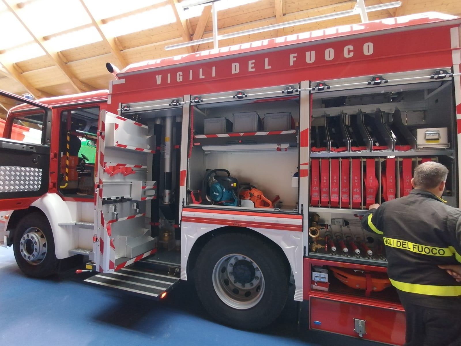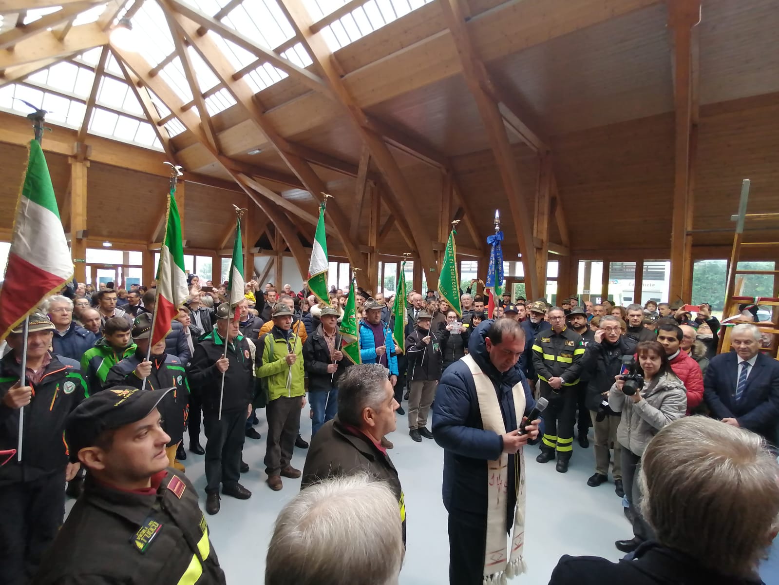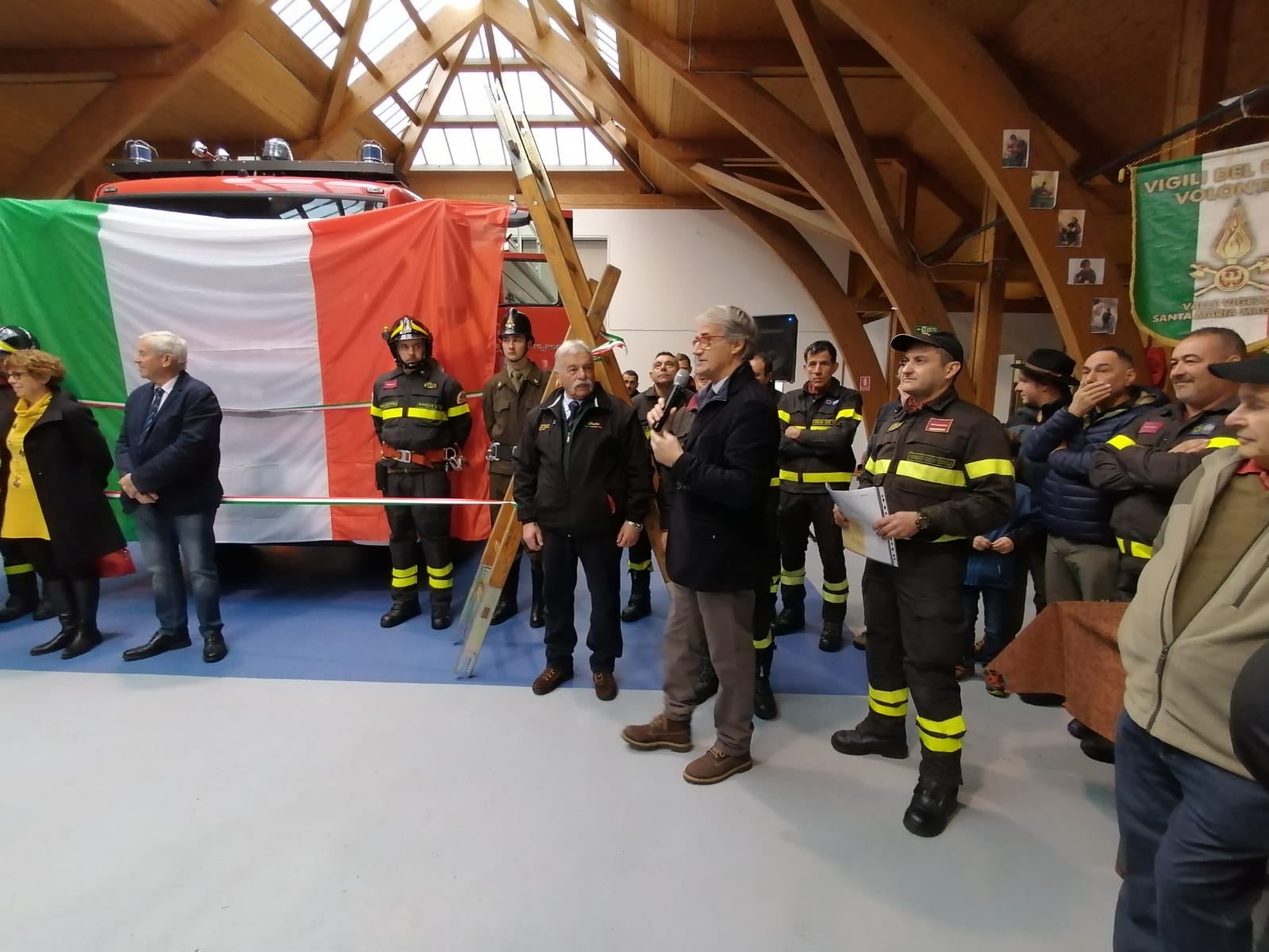 dei pompieri di Santa Maria Maggiore. Domenica mattina alla sala polifunzionale del paese tantissimi hanno partecipato alla presentazione dell’ambioso progetto dei pompieri e alla benedizione della nuova autobotte del distaccamento. Dopo 3 anni finalmente la prima delle 8 autocisterne è a disposizione dei pompieri della Valle Vigezzo, grazie al progetto che ha coinvolto la provincia del Vco, la ferrovia vigezzina, il comune di Santa Maria Maggiore, la Fondazione Comunitaria, l’unione dei comuni, la CRT di Torino che ha raddoppiato i fondi raccolti in questi anni e tantissimi privati che si sono presi a cuore questo progetto e questo gruppo di volontari, ha detto Antonio Locatelli ex capitano del distaccamento di Santa Maria Maggiore.