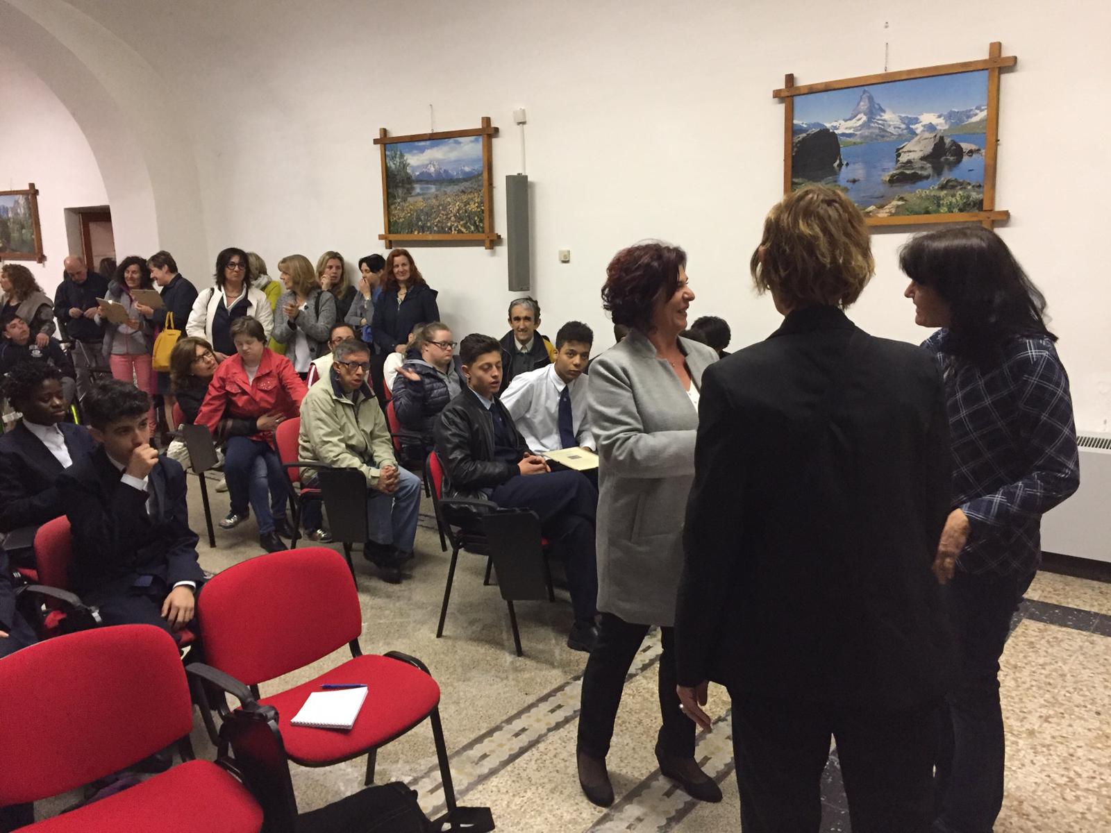 DOMODOSSOLA- 18-05-2019- E' stato presentato nei giorni scorsi all’Istituto Rosmini di Domodossola, il progetto “Ubuntu, io sono perché noi siamo” realizzato dal Gruppo Ossolano Coordinamento Handicap insieme ad una decina di istituti scolastici locali. Ubuntu significa comunità: “L'abbiamo realizzata- così Giancarlo Lotto, uno dei promotori del progetto- in collaborazione col Ciss Ossola ed altre cooperative ed associazioni che si occupano di disabilità nel nostro territorio, abbiamo coinvolto scuole di ogni ordine e grado, hanno partecipato una trentina di classi su dieci scuole hanno prodotto elaborati vari, di cui alcuni sono stati esposti. Ogni classe che ha partecipato ha ricevuto un diploma di ringraziamento, lo scopo è quello di far lavorare i ragazzi sulle differenze, sia sulle disabilità, ma anche sulle differenze”.Alla giornata hanno partecipato anche il presidente del Ciss Ossola, Giorgio Vanni e Paola Castiglioni, della neuropsichiatria infantile dell’Asl.