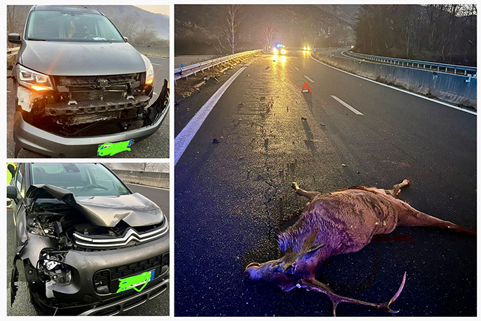 Incidente con un grosso cervo in superstrada. Quattro auto coinvolte, nessun ferito
